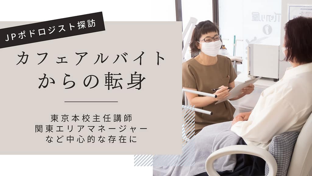 今村 佳子さんにお話をお聞きしました!(JPポドロジースクール 東京本校 主任講師/爪切り屋 足楽 関東エリアマネージャー) 前職はどのようなお仕事でしたか カフェ…