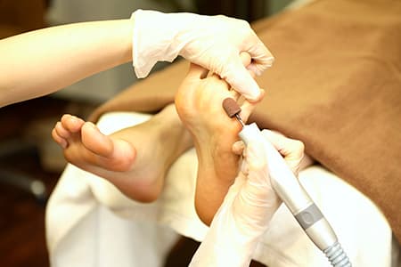 マシンの使い方では、専用マシンを使用してケアの効率アップを図ります。 様々なアタッチメントを使用し、手ごわい肥厚角質から、手作業では困難な細部の魚の目のケア、肥厚爪のケアの方法等をご紹介いたします。
