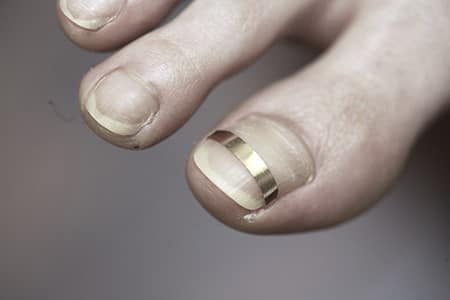 巻き爪ケアでは、金属のプレートをお爪に装着して巻きをリフトアップします。
