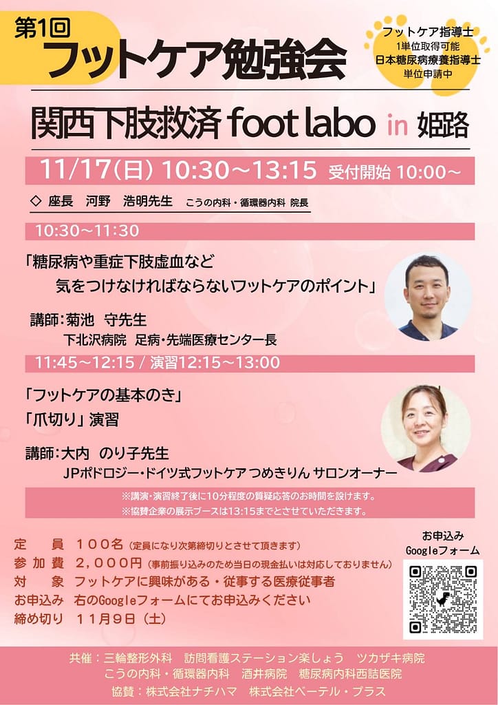 2024年11月17日(日)兵庫県姫路市でフットケア勉強会【関西下肢救済 foot labo in 姫路】が開催されます。