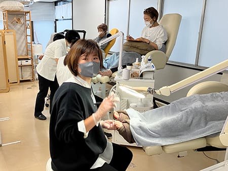 また、短期間ではありましたが、実際にモデルさんの足を施術させてもらったり、検定もあったりで毎日緊張しながらも集中して取り組むことができました。