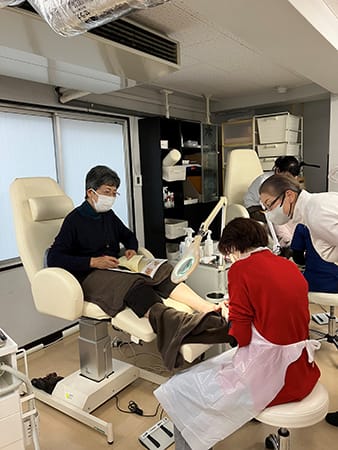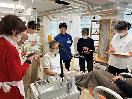 最初は他のところでフットケアを学びました。その後、仲間から「こちらのスクールも良いよ」と勧められたのがきっかけです。