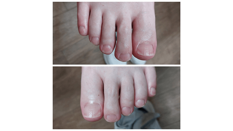 扇形に広がる爪を3週毎に適した形に整えさせて